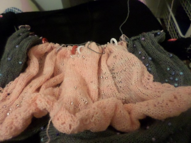 Which means I am having to stop and untangle them every few rows just to keep going. I’m probably not helping myself as much as I think I am by doing this. In fact, I know I’m not. But I have the delusion that this is making me be able to get everything done quicker. So I’m going to keep believing it wouldn’t just be faster to do this one at a time. Even though it most likely would.