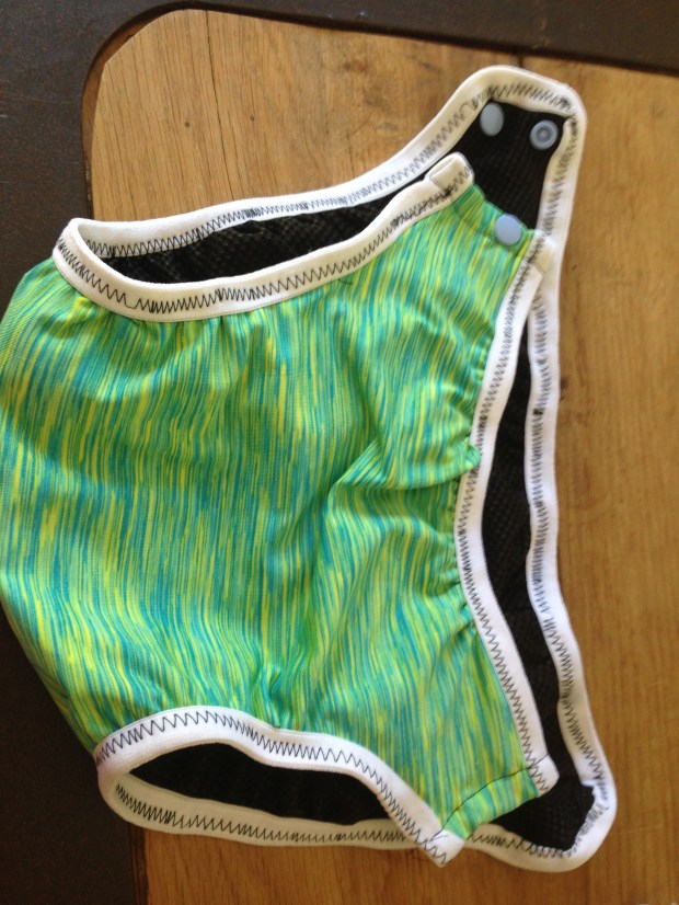 The local swim school requires that kids be put in swim diapers until the age of four, regardless of their potty training status. Once they aren’t actively pooping their pants on a regular basis, it seems a bit wasteful to use a disposable diaper for every class. This is where the reusable swim diaper comes in handy.