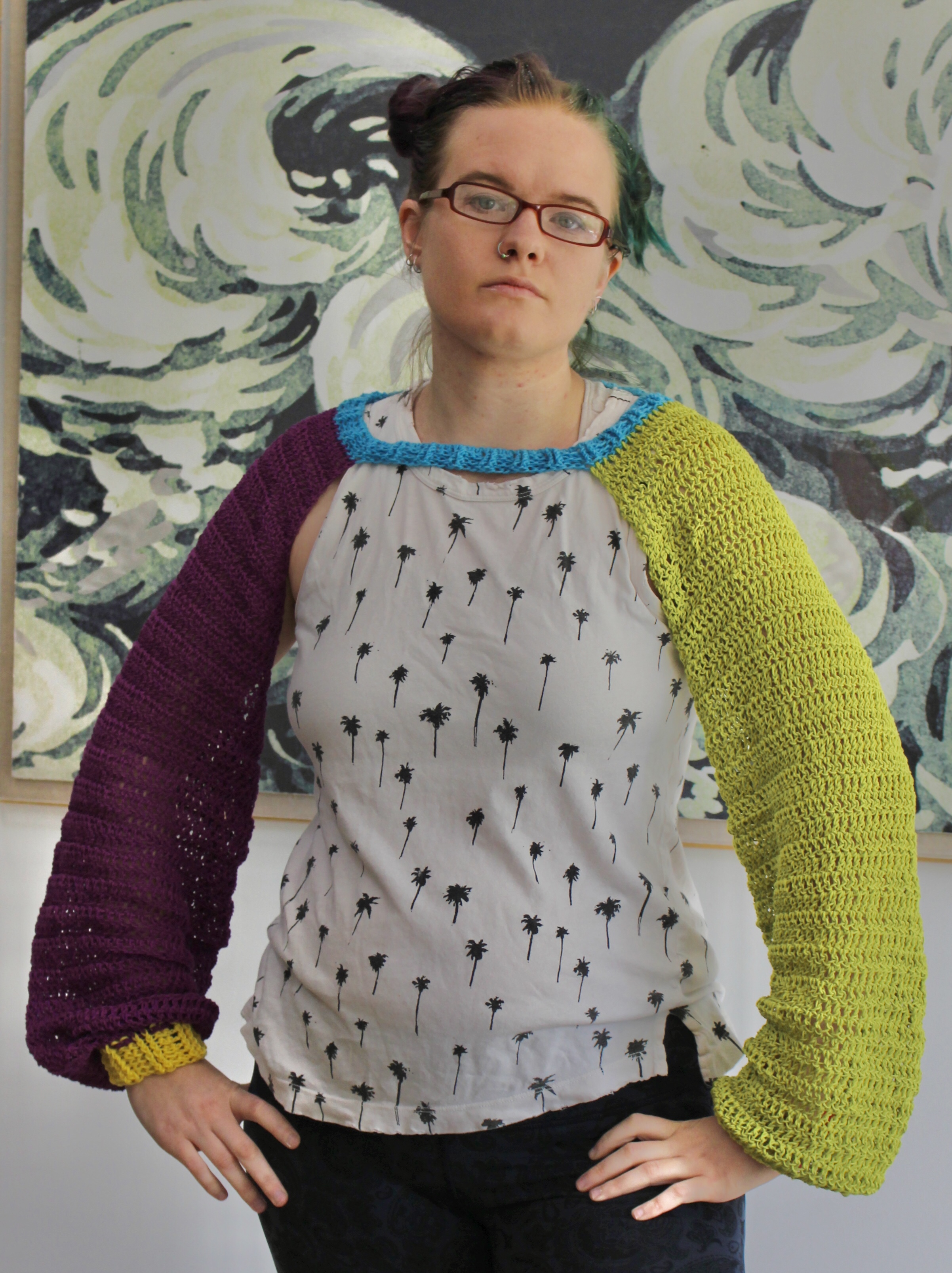 I made the size large to go over sleeves in California winter weather (and because I know nothing about UK sizing and kind of just winged it), but now I’m thinking I need to make a second one in a smaller size and different fiber content for going over t-shirts at the ball park near sun down.