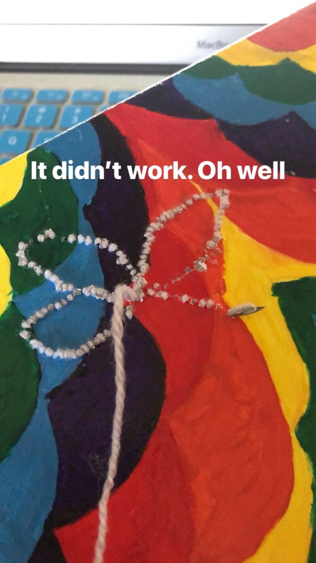 Spoiler alert, it didn’t. I was going to try punch needle on the painted canvas, but it didn’t work out the way I had hoped. It’s ok, though. That’s the point of experimenting. And now I have a couple canvases that I can dismantle and turn into something else. Super excited to do more experimenting.